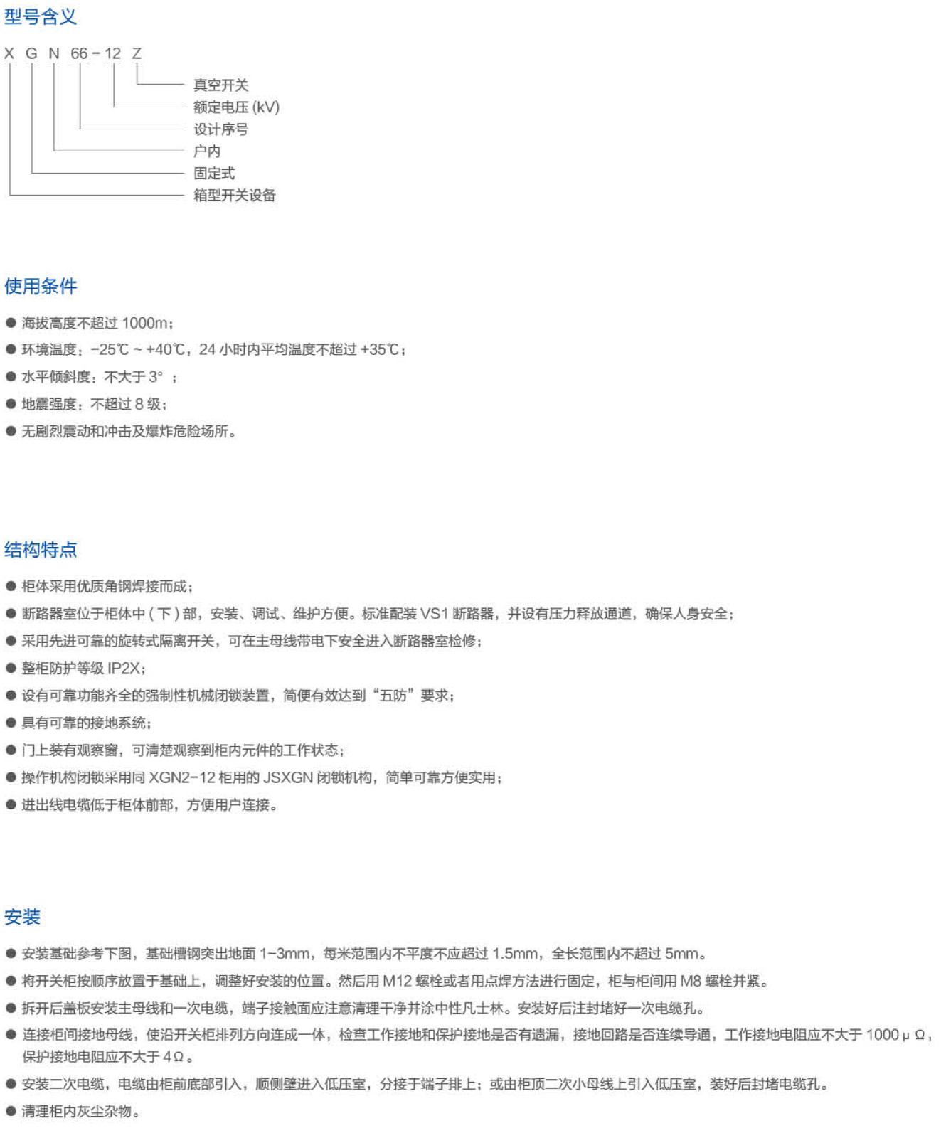 XGN66-12(Z)箱型固定交流金屬封閉開關(guān)設(shè)備(以下簡稱開關(guān)柜)是我公司新一代高壓電器成套產(chǎn)品,符合國家標準GB3906《-35kV交流金屬封閉開關(guān)設(shè)備》電力部DLT404《戶內(nèi)交流高壓開關(guān)柜訂貨技術(shù)條件》的要求,也滿足國際標準IEC60298《1kV以上52kV以下交流金屬封閉開關(guān)設(shè)備和控制設(shè)備的要求》。