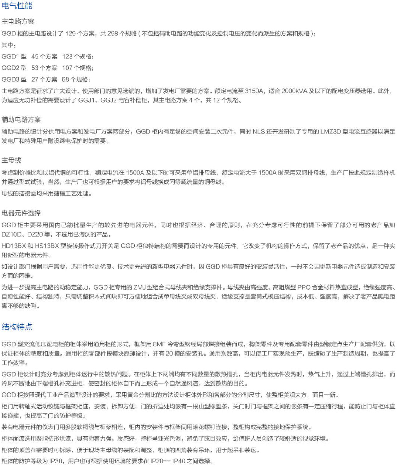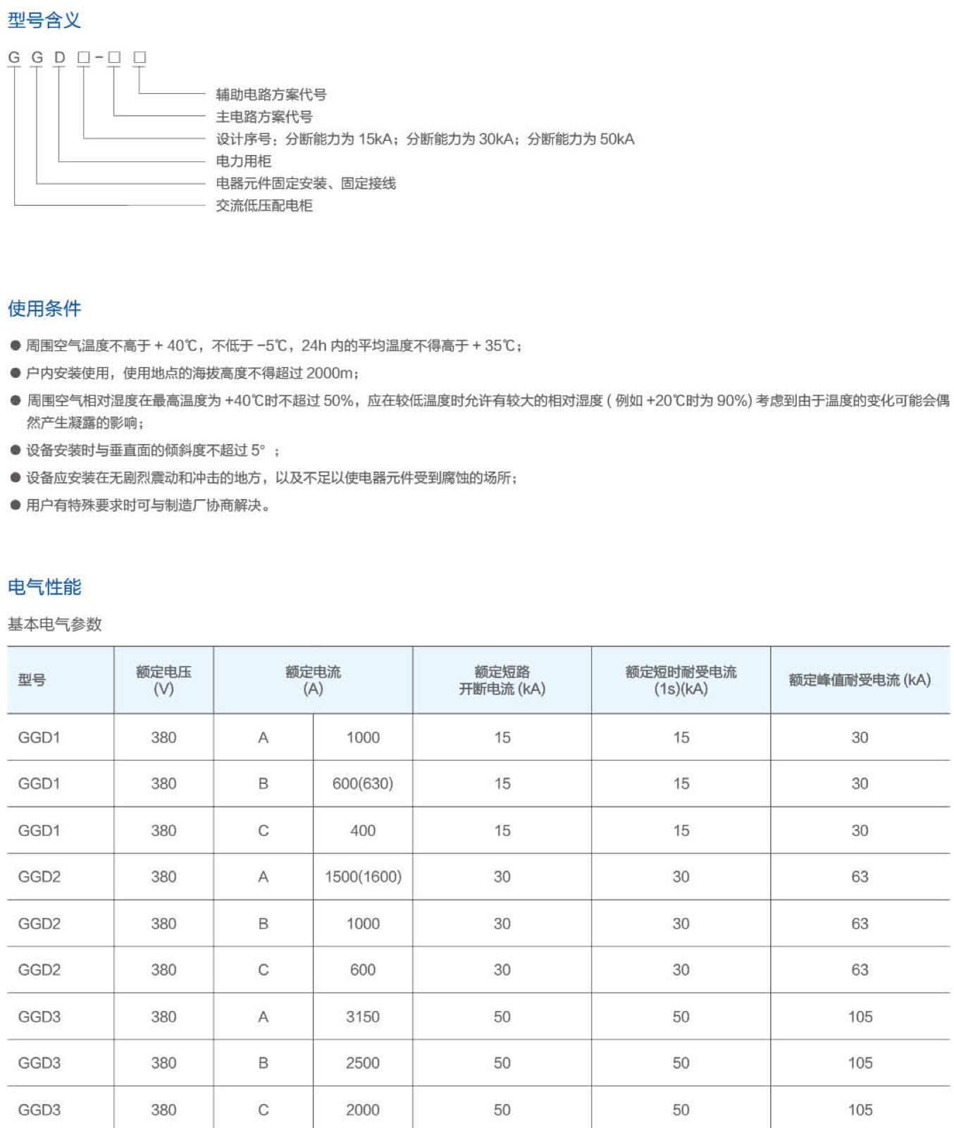 GGD型交流低壓配電柜是根據能源部主管上級與廣大電力用戶及設計部門的要求,本著安全、經濟、合理、可靠的原則設計的新型低壓配電柜。產品具有分斷能力高、動熱穩定性好、電氣方案靈活、組合方便、系列性、實用性強、結構新穎、防護等級高等特點,可作為低壓成套開關設備的更新換代產品使用。GGD型交流低壓配電柜符合IEC439《低壓成套開關設備和控制設備》,GB7251《低壓成套開關設備》等標準。